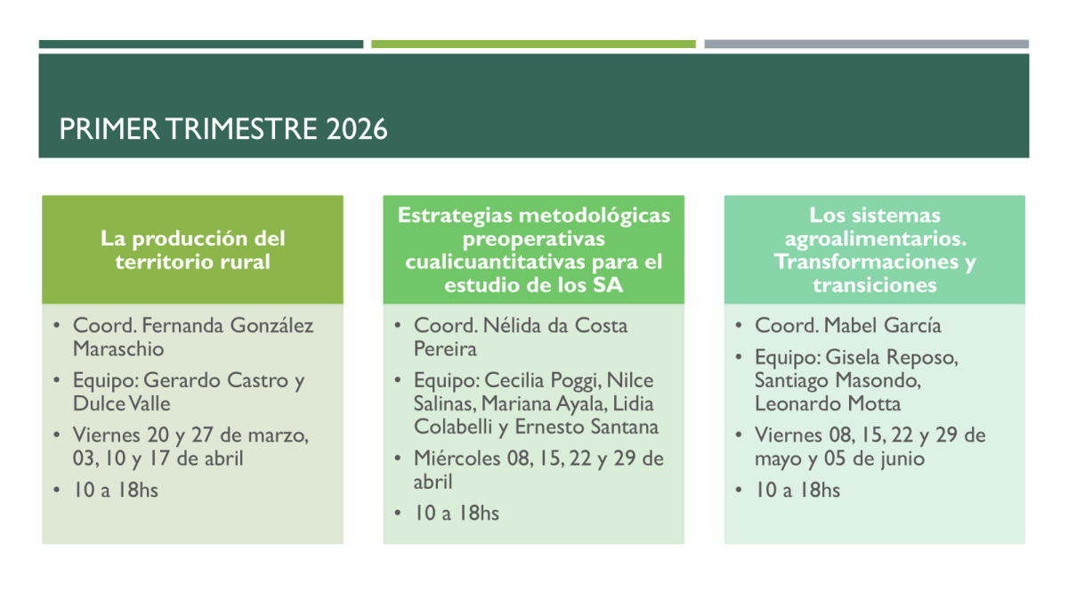 Los seminarios teóricos se organizan en cuatro módulos que abordan cuatro cuestiones centrales para los sistemas agroalimentarios: la cuestión territorial, la cuestión agraria, la cuestión ambiental y la cuestión alimentaria.